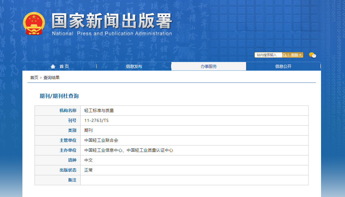 主办单位:中国轻工业信息中心;中国轻工业质量认证中心